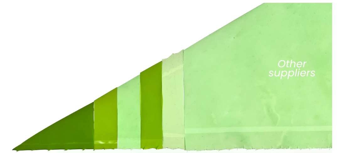 Our piping bags are highly puncture-resistant thanks to their 6-layer structure. The layering of the film makes it practically impossible for any punctures to form.